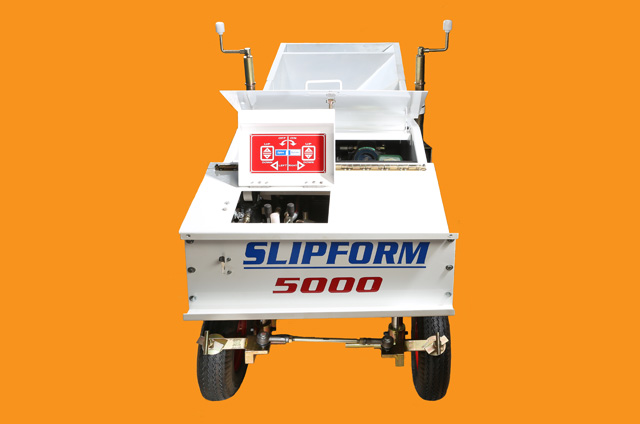 Slipform 5000 kerbmaker machine is designed with improved technologies incorporating new developments in engineering, mechanical and hydraulic fields. The machine provides greater compaction, which produces better and higher concrete kerb strength. This high-tech machine is versatile, efficient,