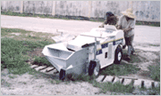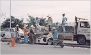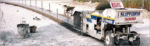 The Slipform 5000 is easily and conveniently transported on a 10' x 16' tandem trailer towed by a pick-up truck. Alternately, the machine can be lifted by a 1½ ton hydraulic JIB crane mounted on a small truck. On site transport is provided for by retractable/removable rear wheels.